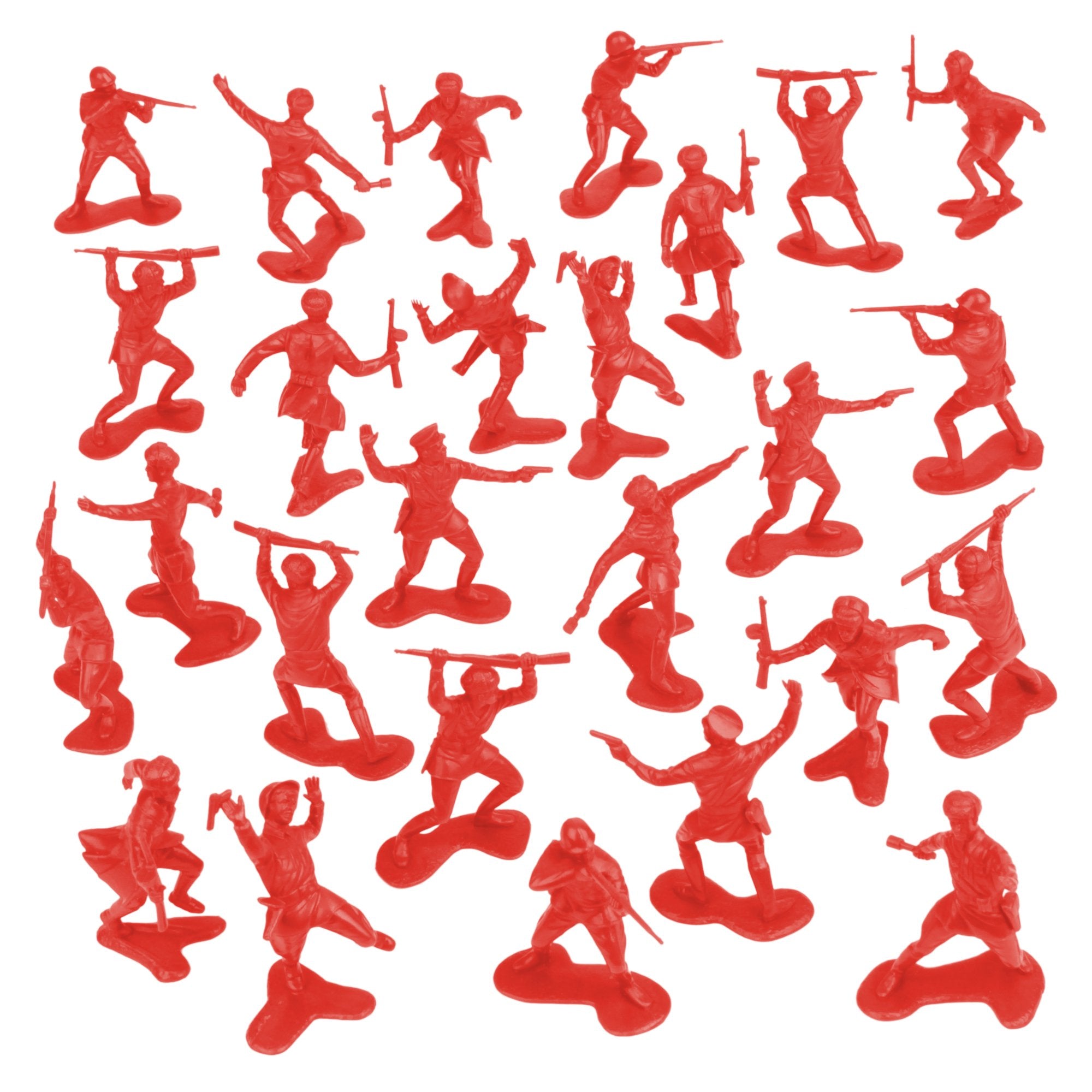 From the Classic Army Men Collector Series, BMC Toys brings back another classic Set of figures from the golden age of Army Men Playsets. This bag of 36 Bright Red Russian Plastic Army Men is proudly manufactured in the United States and features 6 different figures. Troops are approximately 1:32 scale and stand up to 2.25 inches tall. Made from slightly flexible LDPE plastic with fine details and almost no flashing. Includes approximately 4 each of the standing riflemen, shot soldier, officer, and about 8 each of figures running with burp SMG, throwing grenade, and butting with rifle. These USSR Soldiers were originally introduced in the 1960s by Louis Marx Company as Allies in some of their famous WW2 Battleground Playsets. They were later produced by other companies (possibly HG TOYS) and did duty as stand-ins for Korean and even Iraqi forces in some later Playsets. They were later produced in hard plastic for the hobby market. These will make excellent troops for a variety of set ups from Western Front in WW2 to Cold War conflicts with Russia, the Soviet Union communists, or generic bad-guys for your regular Green Army men. This is a Set of real American Made plastic toys, meant to be set up, knocked down, picked up and played with for many years to come. Little Green Army Men have even been inducted into the National Toy Hall of Fame. Packed in clear bag with insert card and recommended for ages 5 and up.