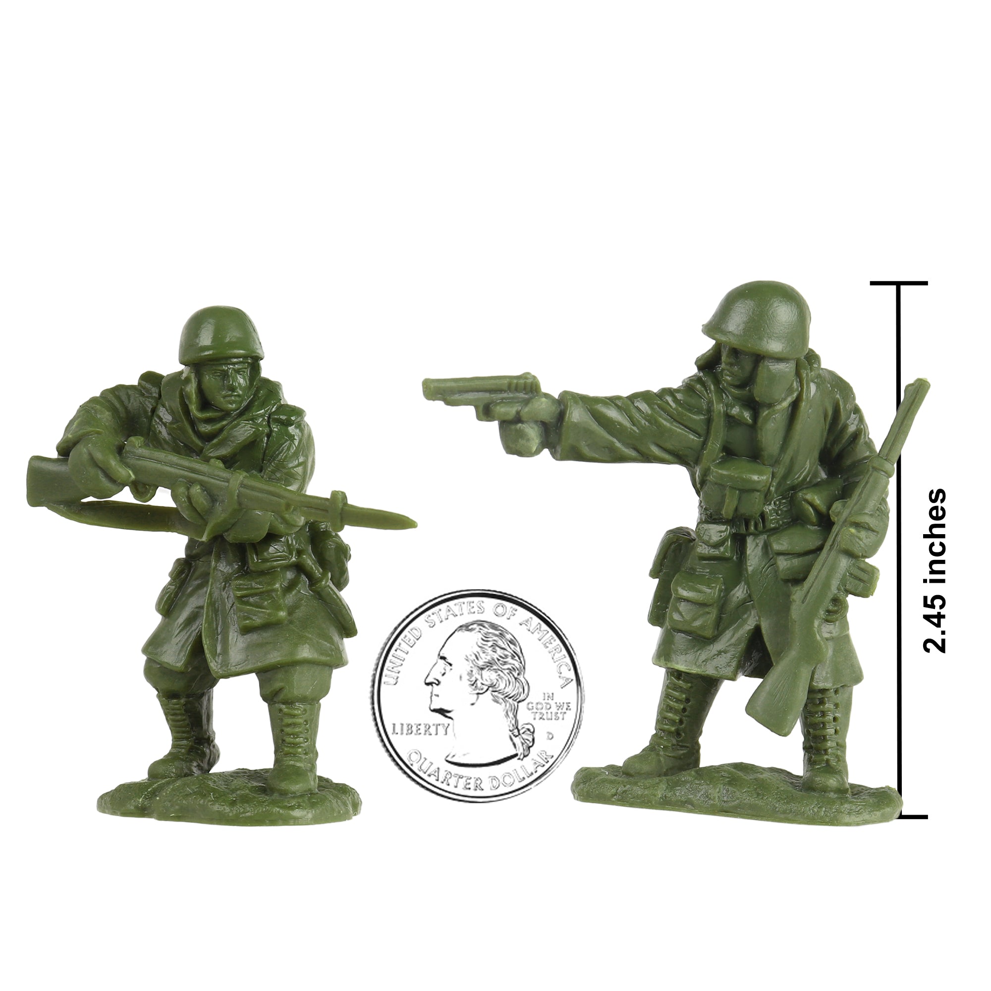 From the BMC Toys American Hero Collector Series, comes some of the most frigid Battles of the Cold War: The Korean War Winter Battle 16 piece Plastic Army Men Set features 16 winter gear United States Soldiers in 8 different poses. Made from soft plastic with lots of detail, figures stand up to 2.45 inches tall and are about 1:30th scale (60mm), so these are Larger than many other BMC Toys figures. The Classic Toy Soldiers Company created and offers these figures to hobby collectors and helped BMC Toys make them available to youngsters. BMC Toys was founded by Bill McMaster in 1991 and specializes in producing historically accurate Plastic Army Men figures and Playsets in the classic realsitic style of the 1950s and 1960s. Instructions: With adult supervision, dip any bent part in hot water, then cold water to straighten. Packaged in clear bag with header card and recommended for ages 5 and up.
