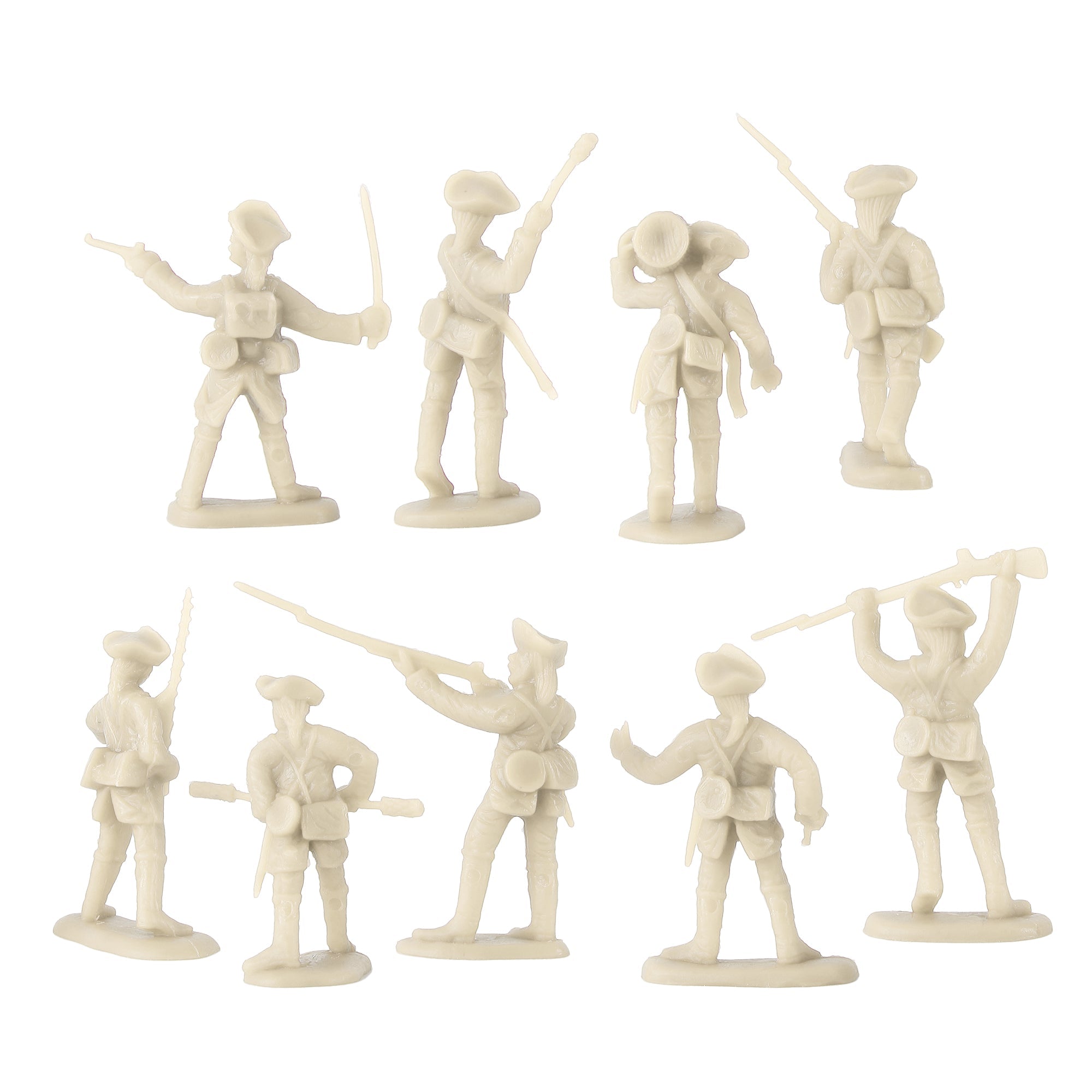 From the BMC Toys American Hero Collector Series, a decisive victory for the Americans: The American Revolutionary War Battle of Yorktown Artillery Attack 32 piece Plastic Army Men Set features 10 different figures and includes 9 Colonial Americans in blue, 9 British Empire Redcoats in red, and 9 French Soldiers in Antique-White. Also includes character figure of General George Washington astride his horse 'Blueskin', and 3 Naval 12 Pounder Cannon. The figures are made from fairly flexible LDPE plastic with medium detail, stand up to 2.3 inches tall and are 1:32nd scale. Cannon measure 1 inch x 1 inch x 3 inches long and are made from stiff black color ABS plastic. BMC Toys was founded by Bill McMaster in 1991 and specializes in producing historically accurate Plastic Army Men figures and Playsets in the classic realsitic style of the 1950s and 1960s. Packaged in clear bag with header card and recommended for ages 5 and up.