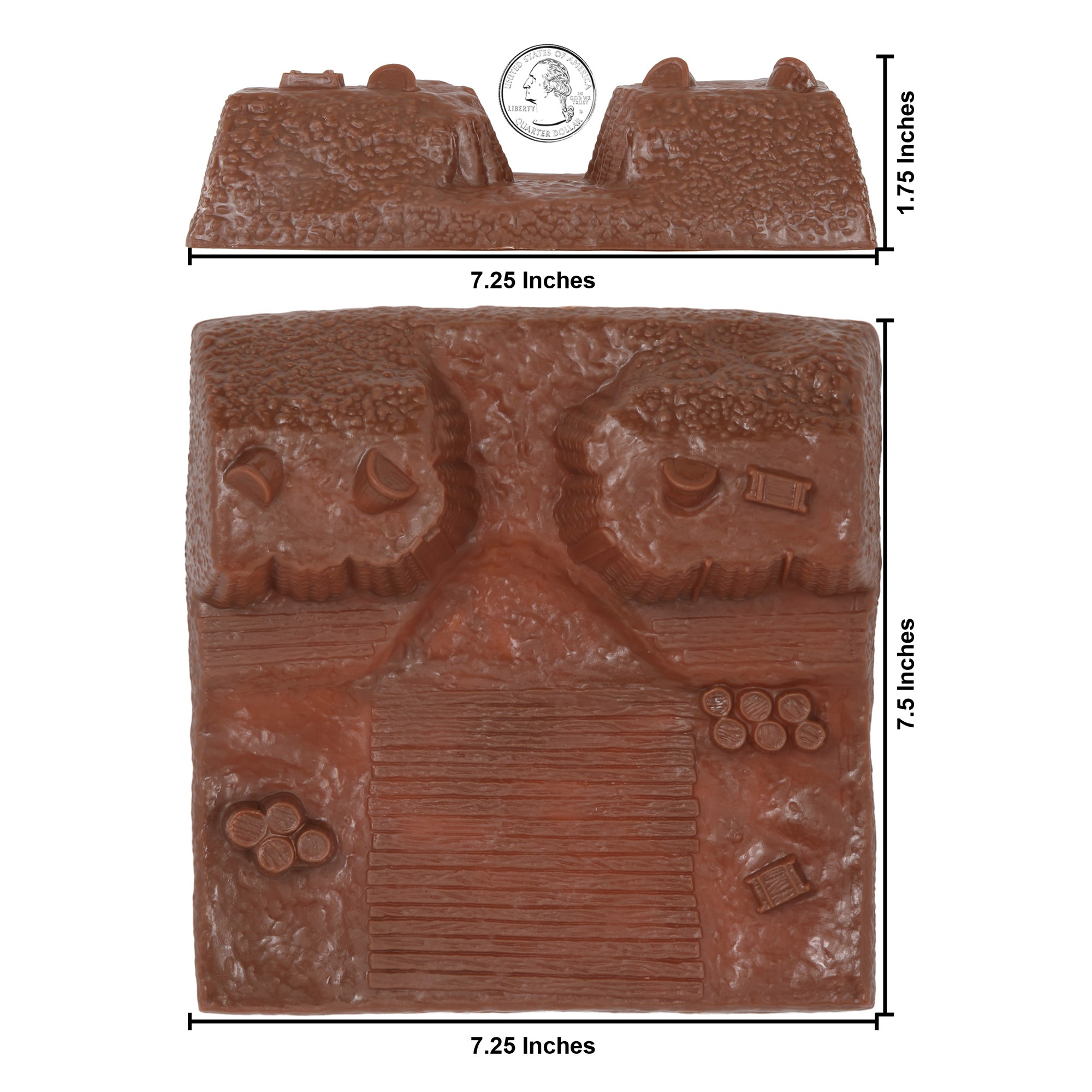 From the BMC Toys American Hero Collector Series, the American Revolutionary War Redoubt Terrain includes 2 earthwork artillery emplacements with basket gabions and supplies. Each redoubt measures 7.5 inches x 7.25 inches wide x 1.75 inches tall and are approximately 1:32 scale. Made from stiff brown color ABS plastic. This plastic terrain design was originally offered in the early 1990s as part of the Battle of Yorktown, BMC Toy's very first plastic toy soldier box set. This artillery position makes a great addition to 17th, 18th, and 19th century playsets and school project dioramas. BMC Toys was founded by Bill McMaster in 1991 and specializes in producing historically accurate Plastic Army Men figures and Playsets in the classic realistic miniature style of the 1950s and 1960s. Packaged in clear bag with label and recommended for ages 5 and up.