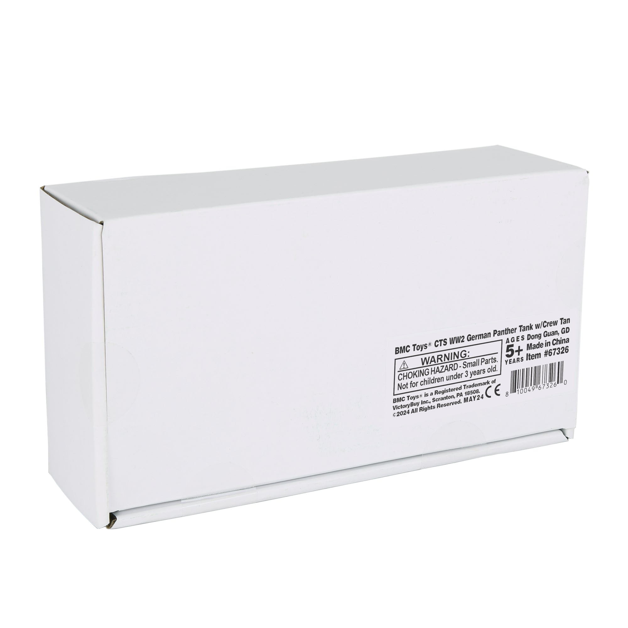 From the BMC Toys Classic Toy Soldier Collector Series, the most widely deployed Tank of the German Army. This WW2 PANTHER V Tank features lots of authentic detail 3 man crew. The turret rotates and has elevating barrel with printed bar cross insignia and LMG mounted on top. Tank is made from stiff charcoal-gray color ABS plastic, measures 3.45 inches wide x 3.1 inches tall x 7.1 inches long (9 including long barrel) and is approximately 1:38 scale. The Tank commander 'half' figure is removable so hatch can be closed. Figures and LMG are made from tan soft plastic. This Tank is also known as Panzerkampfwagen V Panther, Pz.Kpfw. V, Mark V, and official designation is Sd.Kfz. 171. Approximately 6,000 were produced from 1943 to 1945. It was deployed on the Eastern and Western fronts of the the European theater. These Tanks were initially offered to hobby collectors by Classic Toy Soldiers Company around 2000. Classic Toy Soldiers Co. worked with BMC Toys to make them available to today's youngsters. BMC Toys was founded by Bill McMaster in 1991 and specializes in producing historically accurate Plastic Army Men figures and Playsets in the classic realistic classic realistic miniature style of the 1950s and 1960s. These vehicles are a perfect addition for WWII Playsets and school project dioramas. Packaged in plain white box with label and recommended for ages 5 and up.