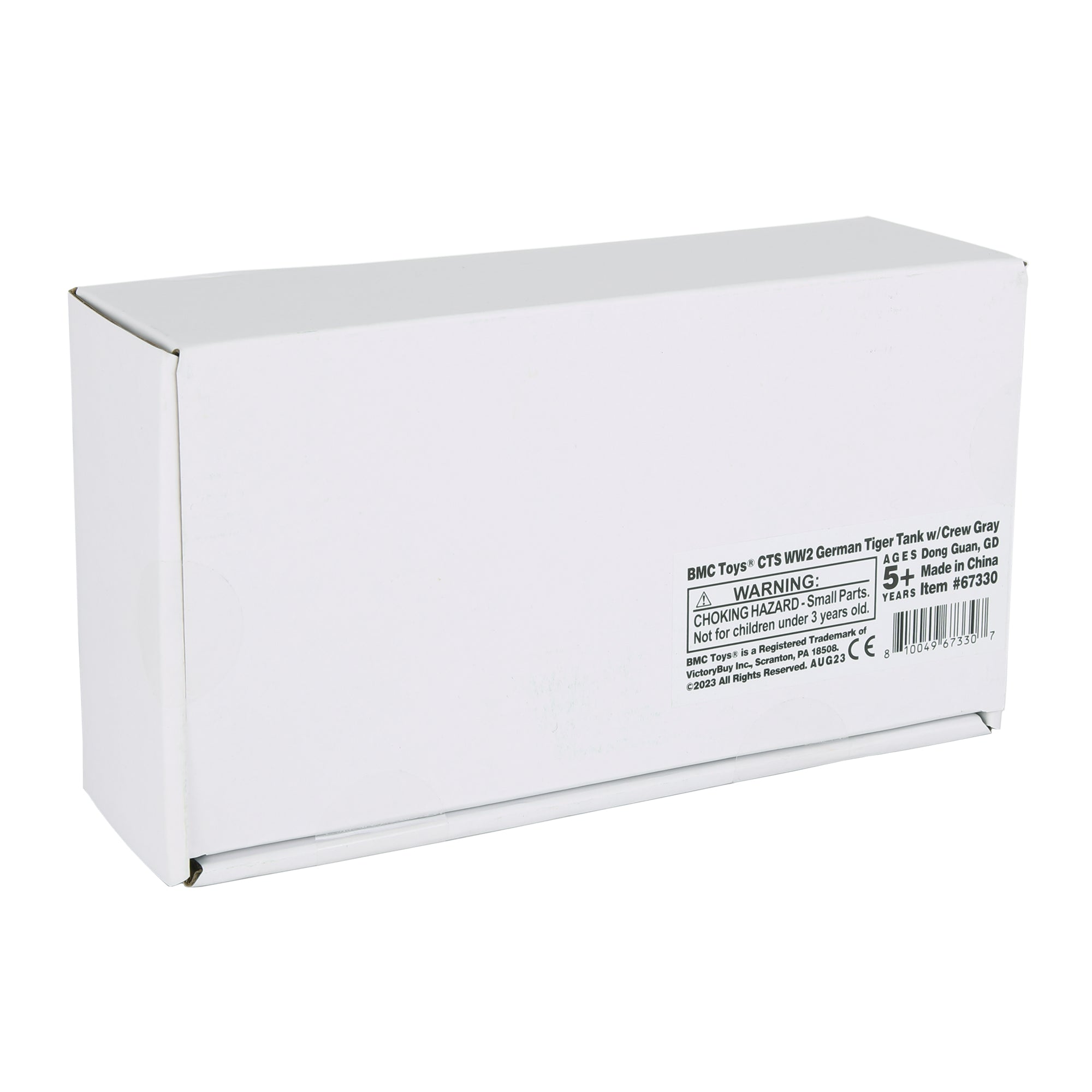 From the BMC Toys Classic Toy Soldier Collector Series, a Tank feared by the Allies on all fronts. This WW2 Tiger I Tank features lots of authentic detail and 3 man crew. The turret rotates and has elevating barrel with printed bar cross insignia. Tank is made from stiff charcoal-gray color ABS plastic, measures 3.75 inches wide x 2.9 inches tall x 6.25 inches long (8.75 including barrel) and is approximately 1:38 scale. The Tank commander 'half' figure is removable so hatch can be closed. Figures are made from charcoal-gray soft plastic. This Tank is also known as Panzerkampfwagen VI Ausführung H, PzKpfw VI Ausf. H, PzKpfw VI Ausf. E, and official designation is Sd.Kfz. 182 or Sd.Kfz. 181. Approximately 1,300 were produced from 1942 to 1944. It was deployed in the North African Campaign and on the Eastern and Western fronts of the the European theater. These Tanks were initially offered to hobby collectors by Classic Toy Soldiers Company around 1997. Classic Toy Soldiers Co. worked with BMC Toys to make them available to today's youngsters. BMC Toys was founded by Bill McMaster in 1991 and specializes in producing historically accurate Plastic Army Men figures and Playsets in the classic realistic classic realistic miniature style of the 1950s and 1960s. These vehicles are a perfect addition for Playsets and school project dioramas of many historical conflicts of the 20th century including World War II and the Korean War. Packaged in plain white box with label and recommended for ages 5 and up.