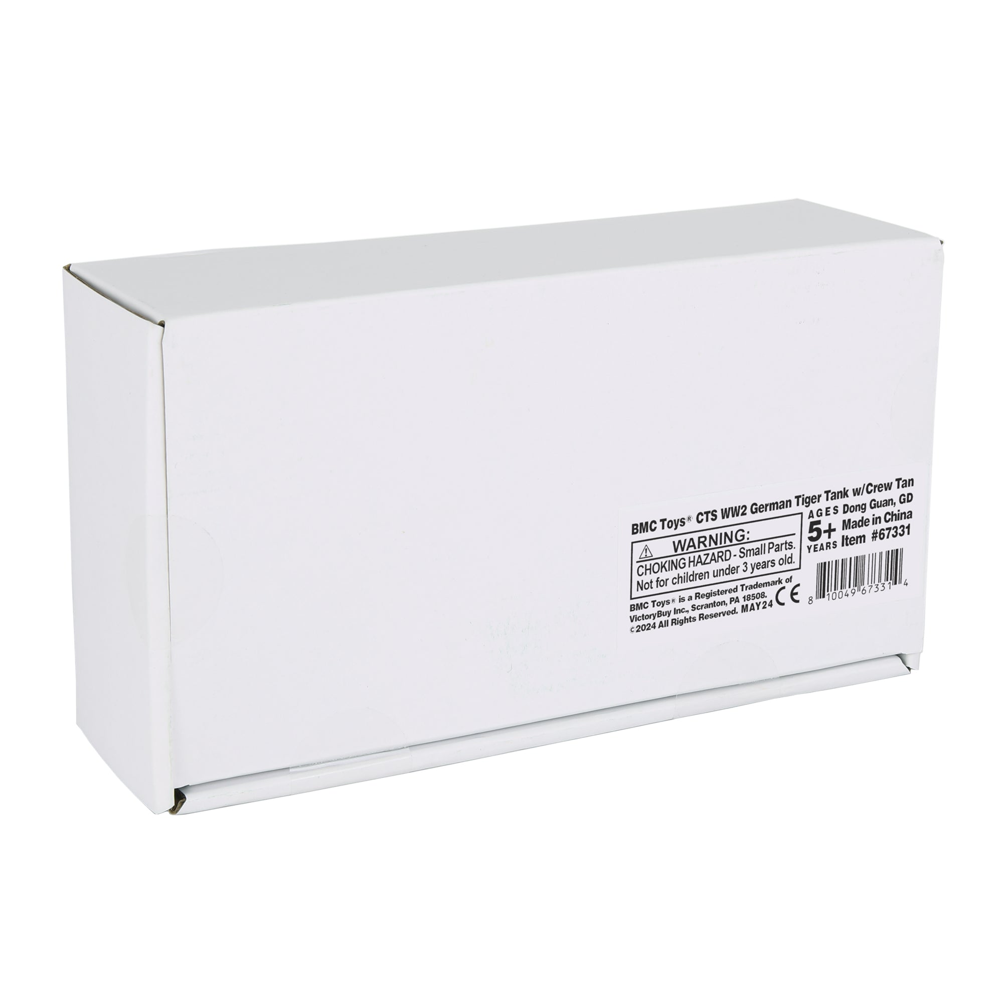From the BMC Toys Classic Toy Soldier Collector Series, a Tank feared by the Allies on all fronts. This WW2 Tiger I Tank features lots of authentic detail and 3 man crew. The turret rotates and has elevating barrel with printed bar cross insignia. Tank is made from stiff charcoal-gray color ABS plastic, measures 3.75 inches wide x 2.9 inches tall x 6.25 inches long (8.75 including barrel) and is approximately 1:38 scale. The Tank commander 'half' figure is removable so hatch can be closed. Figures are made from tan soft plastic. This Tank is also known as Panzerkampfwagen VI Ausführung H, PzKpfw VI Ausf. H, PzKpfw VI Ausf. E, and official designation is Sd.Kfz. 182 or Sd.Kfz. 181. Approximately 1,300 were produced from 1942 to 1944. It was deployed in the North African Campaign and on the Eastern and Western fronts of the the European theater. These Tanks were initially offered to hobby collectors by Classic Toy Soldiers Company around 1997. Classic Toy Soldiers Co. worked with BMC Toys to make them available to today's youngsters. BMC Toys was founded by Bill McMaster in 1991 and specializes in producing historically accurate Plastic Army Men figures and Playsets in the classic realistic classic realistic miniature style of the 1950s and 1960s. These vehicles are a perfect addition for Playsets and school project dioramas of many historical conflicts of the 20th century including World War II and the Korean War. Packaged in plain white box with label and recommended for ages 5 and up.