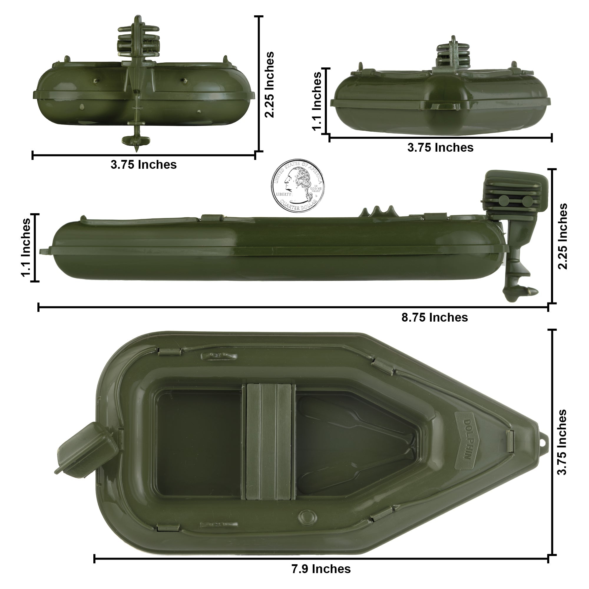 TimMee Toy Plastic Raft & Boats - 3 Olive Green Army Men Ships - Made in USA