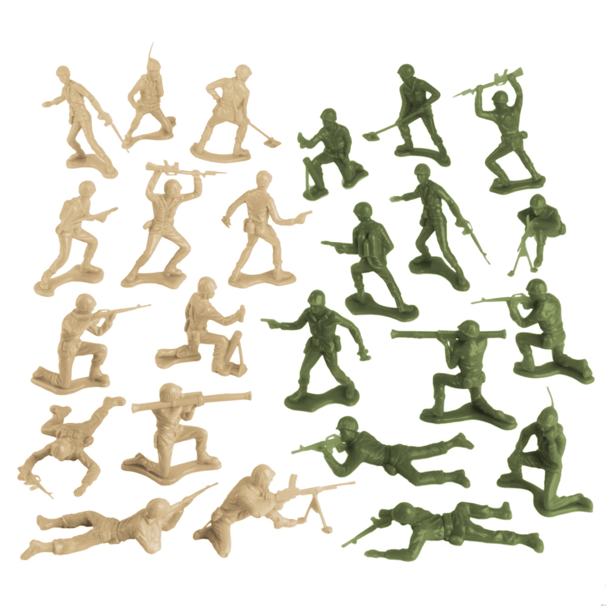TimMee Plastic Army Men - Green vs Tan 48pc Toy Soldier Figures - Made in USA