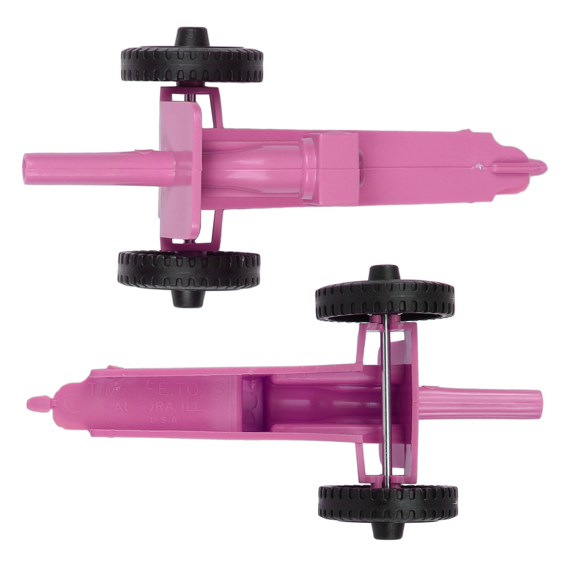 The Tim Mee Toy US Army M3 Artillery is ready for your next epic backyard battle. This 4 piece Set of wheeled anti-Tank cannon is proudly manufactured in the United States. They feature smooth rolling wheels with metal axles, measure nearly 4.25 inches long when hitched together, and are approximately 1:32 scale. Made from slightly stiff Pink color HDPE plastic with very little flashing. Modeled after the M3 37mm Artillery. Processed Plastic Co. (Tim Mee Toy's parent company at the time) produced this toy from the 1950's to the 1990's. The hitch was modified in later years to the 'slot style hitch' of the Combat Patrol MB vehicle for a more secure connection. These cannon are also compatible with the 2020 reissue of the Tim Mee Toy Combat Convoy Deuce-and-a-Half 2-1/2 Ton Cargo Trucks and the Fall 2023 production Tim Mee Toy Recon Patrol Modern Armored Cars. These are sturdy real American Made toys, meant to be rolled around, knocked over, picked up and played with for years to come. Packed in clear bag with insert card that features vintage toy art. Recommended for ages 5 and up.