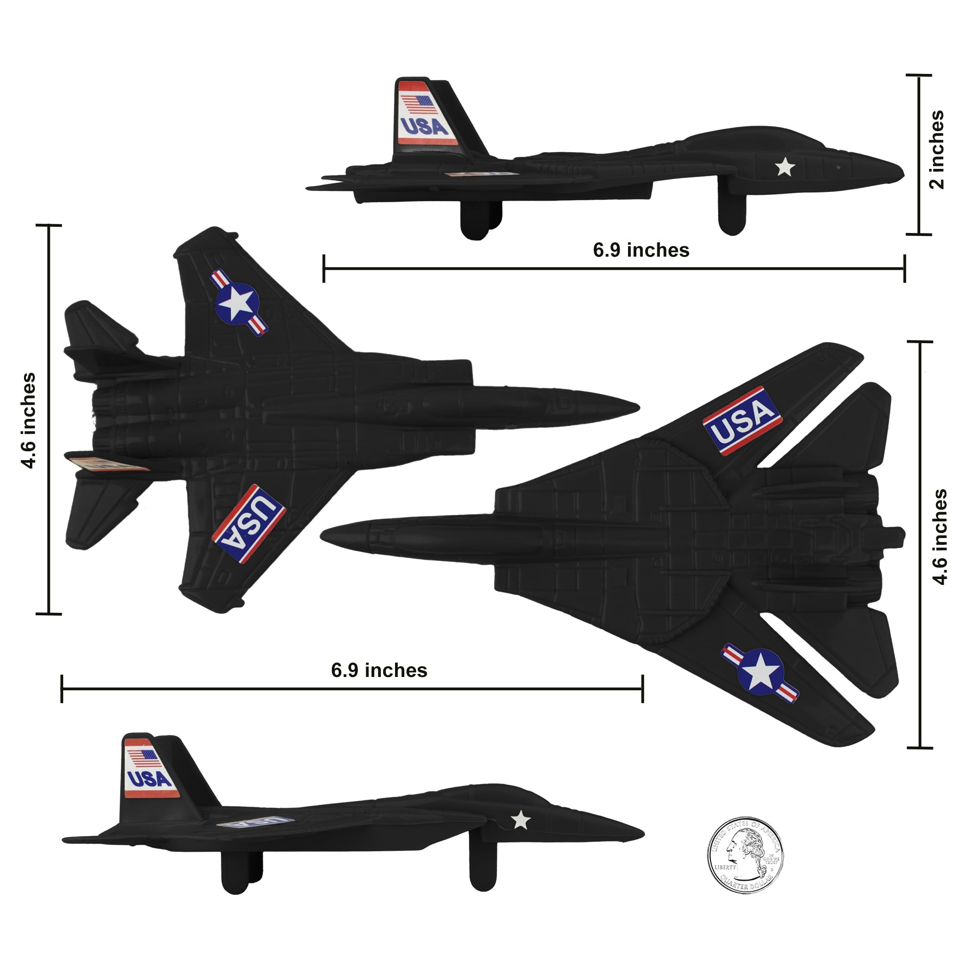 TimMee Plastic Army Men Combat Fighter Jets - 4pc Black Airplanes Made in USA