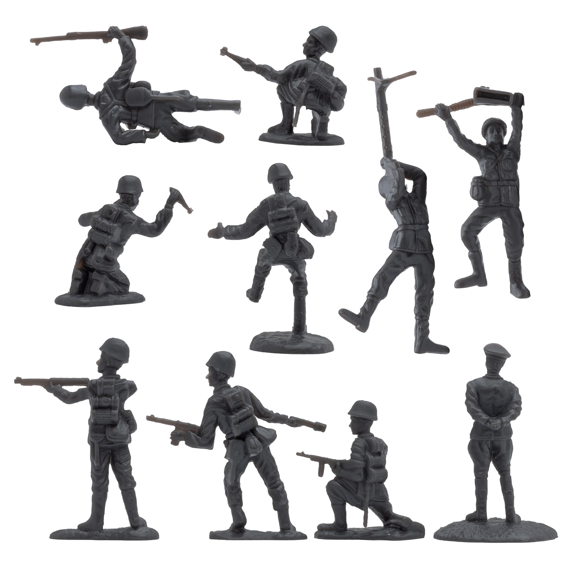 From the BMC Toys American Hero Collector Series, part of the greatest invasion in military history: The D-Day+ Secret Stronghold 36 piece Plastic Army Men Playset includes a 3-in-1 Bunker Building, 11 American GIs in OD-Green, 10 German Soldiers in charCoal-Black, 2 Flak 37 Artillery, 2 Ladders, 2 Flags, 2 Rock Formations, 1 Mortar, 1 Barbed Wire Fence section, and 4 Sandbag Stacks.