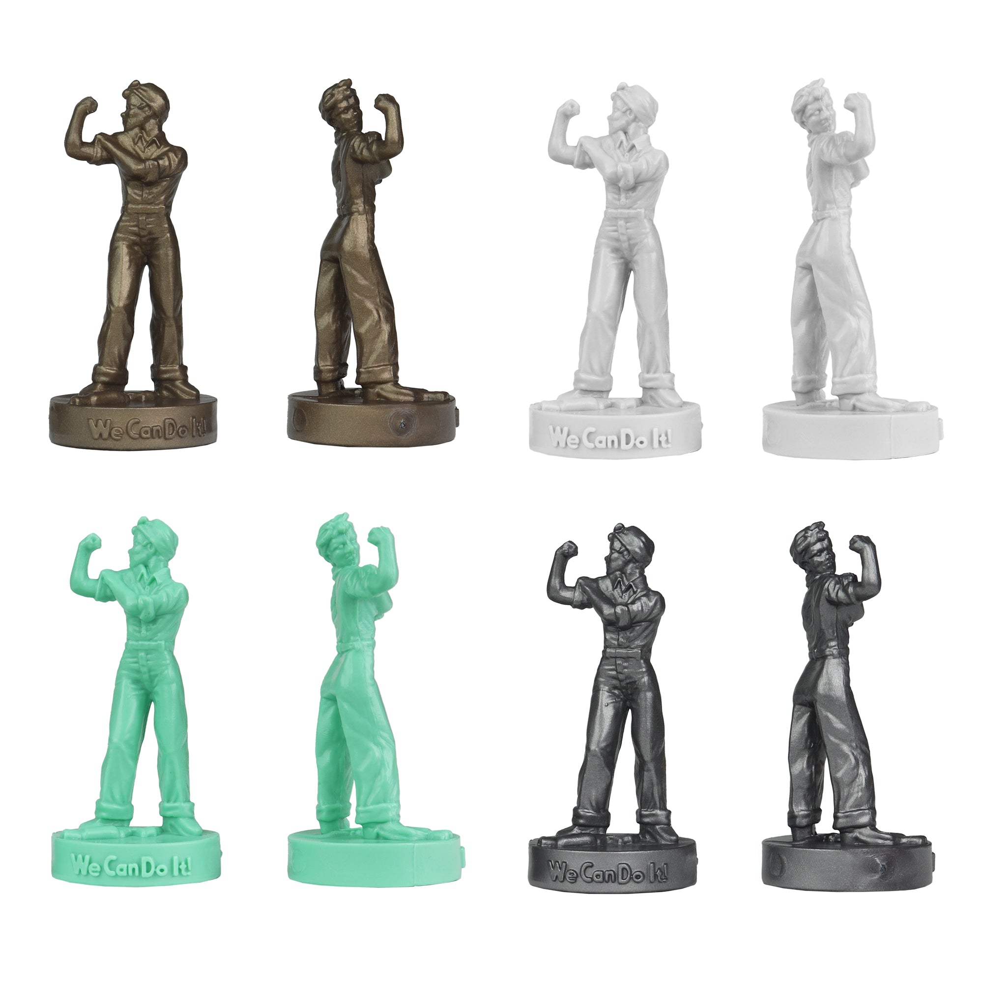 The BMC Toys Rosie the Riveter is an all new original toy figure that is scheduled for Fall 2020 production. The 12 piece Set includes 3 each Bronze, Pewter, Marble-White, Liberty-Green color figures. She stands 2.5 inches tall including the round pedestal base that features her popular 'We Can Do It.' slogan. Made from slightly stiff HDPE Plastic and is approximately 1:30 scale.. BMC Toys Rosie was inspired by the classic war time 'We Can Do It.' poster that went on to become a pop-culture perennial and is styled after the plastic toy character figures made by American Toy companies of the 1950's and 1960's. This is a Set of real American Made plastic heroes, meant to be set up, knocked down, picked up and played with for years to come. Packed in clear bag with insert card and recommended for ages 5 and up.