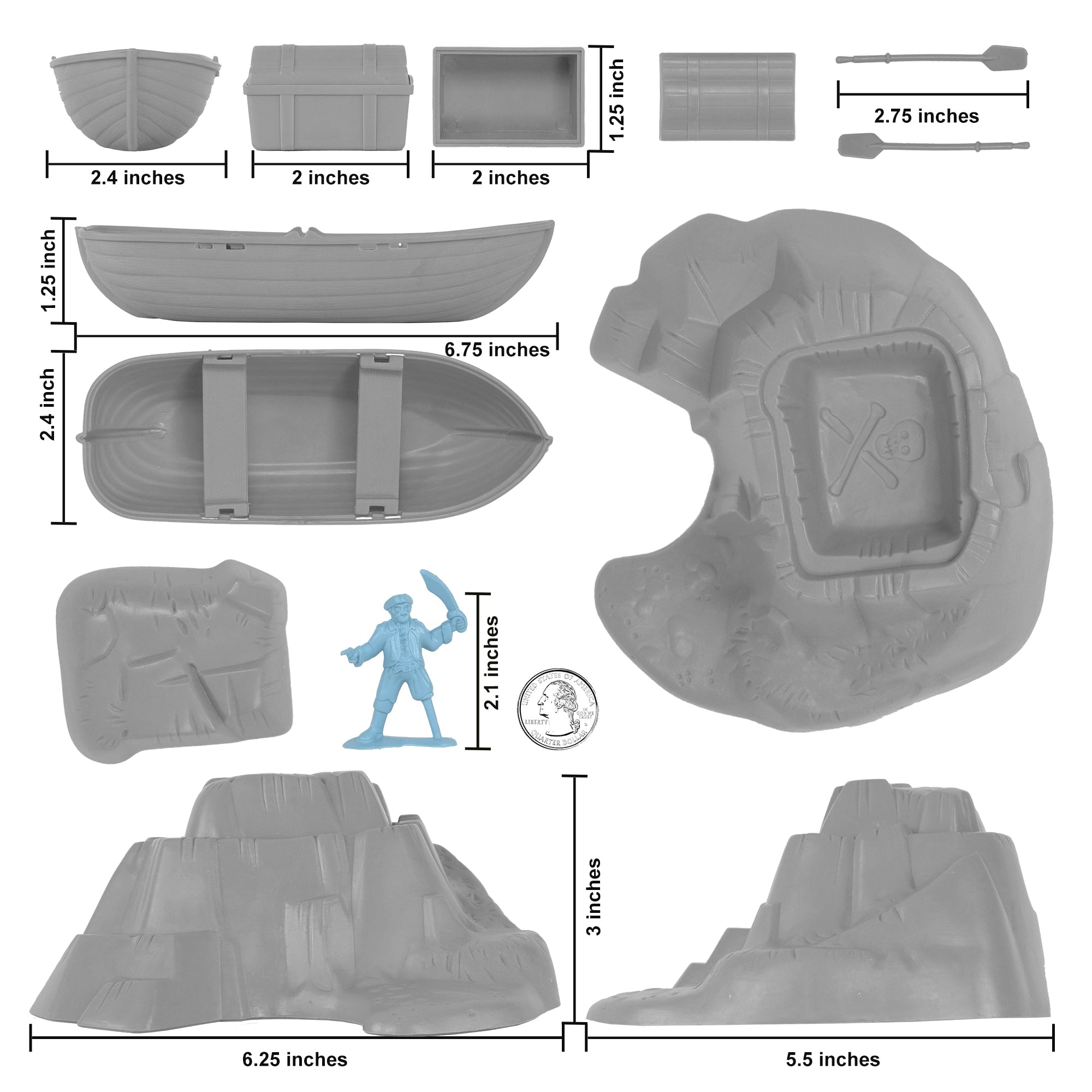 Tim Mee Pirates of Treasure Island - Blue 28pc Plastic Toy Figures Boat Chest