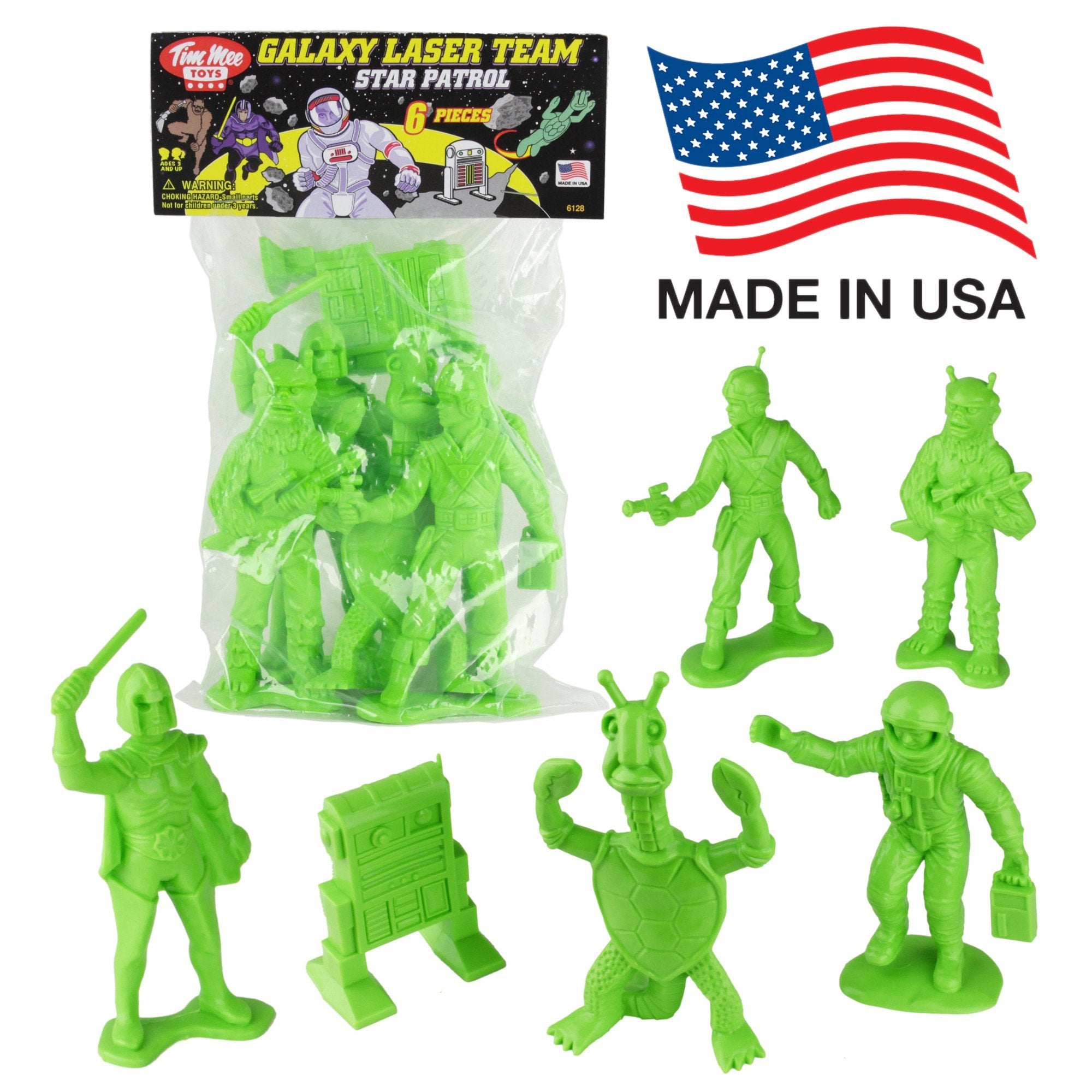 TimMee Galaxy Laser Team Big Space Figures - Bright Green 6pc Set Made in USA