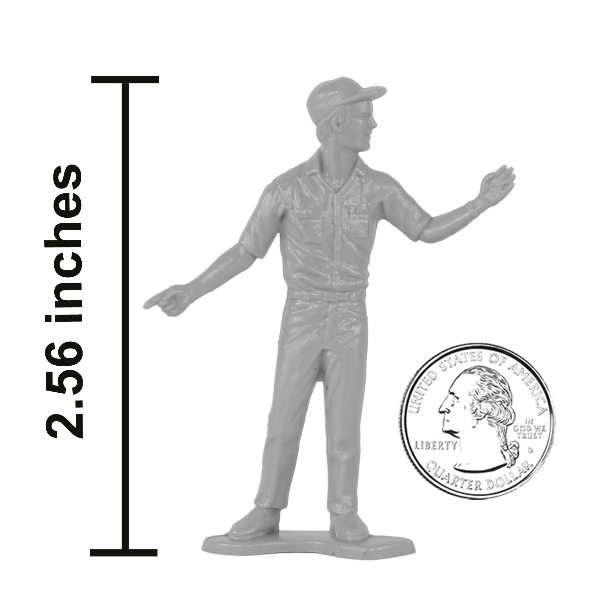Specialists and Support Crews for your Plastic Army are ready for action. This Set of 18 Tim Mee Toy Plastic Army Men is proudly manufactured in the United States, and includes gray troops in 9 poses for maximum play value. Features test pilot, mechanics, ground crew, and even a film and sound crew. Figures stand up to 2.5 inches tall and are approximately 1:32 scale. Made from slightly flexible LDPE plastic with medium detail, and a little flashing. Originally produced around 1966 by Processed Plastic Co. (Tim Mee Toy's parent company at the time). These figures were initially offered as Speedway Pit Stop Indy Car Racing and later branded as NASCAR. They were usually plastic injection tooled in Red, White and Blue colors and often included with race cars as well as separately in a bag with a traffic cone. These are real plastic heroes, meant to be set up, knocked down, picked up and played with for years to come. Little Green Army Men have even been inducted into the National Toy Hall of Fame. Packed in clear bag with insert card and recommended for ages 5 and up.
