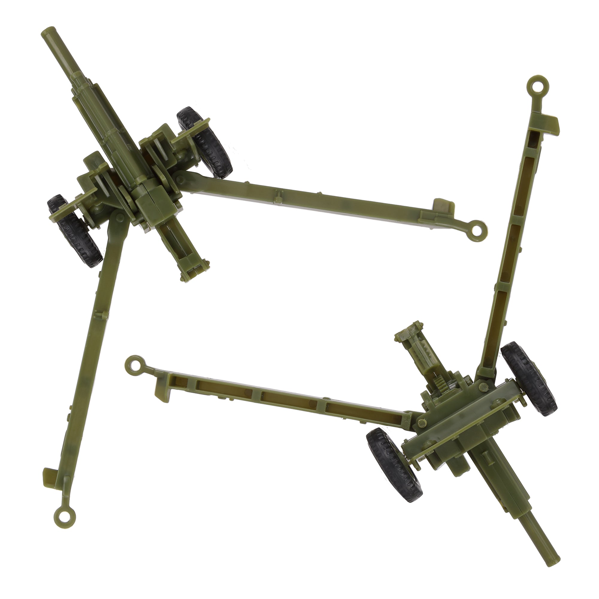From the BMC Toys Classic Toy Soldier Collector Series, small field Artillery that packed a big punch. The WW2 US Artillery 12 piece Plastic Army Men Set features a long barrel howitzer, 2 short barrel howitzers, and 9 crew figures in 3 different poses. Both Artillery models have rolling wheels with metal axles, and the short barrel cannon feature barrels that elevate and movable trailing arms. Soldiers include 3 man Artillery crew. Figures are made from OD-Green color soft plastic with lots of detail and stand up to 2.4 inches tall. Artillery is made from OD-Green hard plastic and measure up to 2.8 inches tall and 7.5 inches long. All pieces are approximately 1:32 scale. The short barrel Howitzer was initially offered to hobby collectors by Classic Toy Soldiers Company around the late 1990s, and the Artillery crew figures around 2010. The long barrel Howitzer was originally made for hobby collectors by The Toy Soldier Company and modeled after the version that was included in many famous Louis Marx & Company Battleground Playsets from the 1950s and 1960s. Classic Toy Soldiers Co. and Toy Soldiers Co. worked with BMC Toys to make these figures and accessories available to today's youngsters. BMC Toys was founded by Bill McMaster in 1991 and specializes in producing historically accurate Plastic Army Men figures, accessories, and Playsets in the classic realistic classic realistic miniature style of the 1950s and 1960s. These figures and accessories are the perfect addition to any WWII, Korean War, and Cold War era Playset or school project diorama. Packaged in plain white box with label and recommended for ages 5 and up.