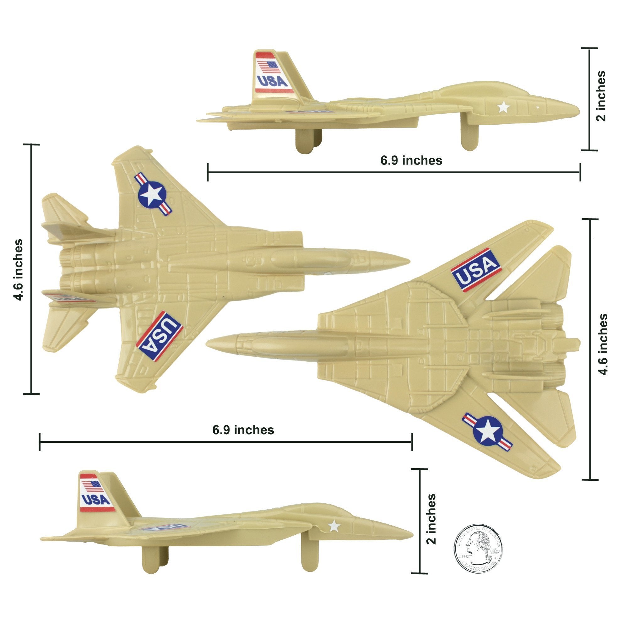 • Olive-Green Patton Tank, Desert-Tan F-14 Jet and F-15 Fighter Jets