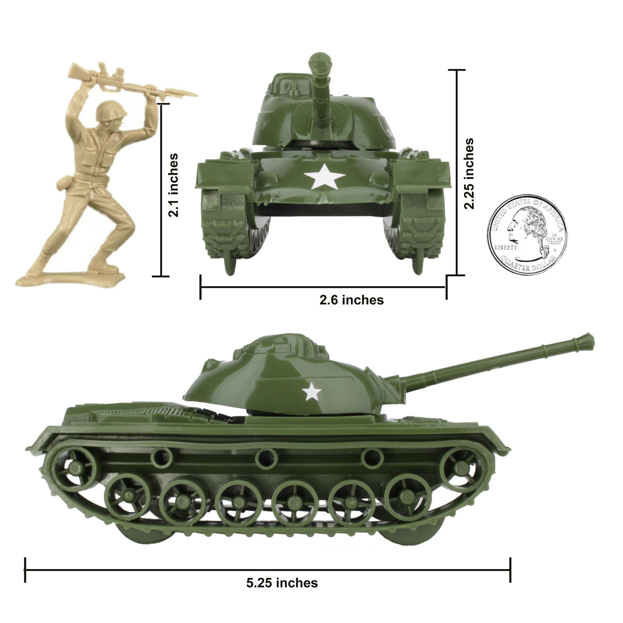 • 24 Desert-Tan and 24 Olive-Green Figures