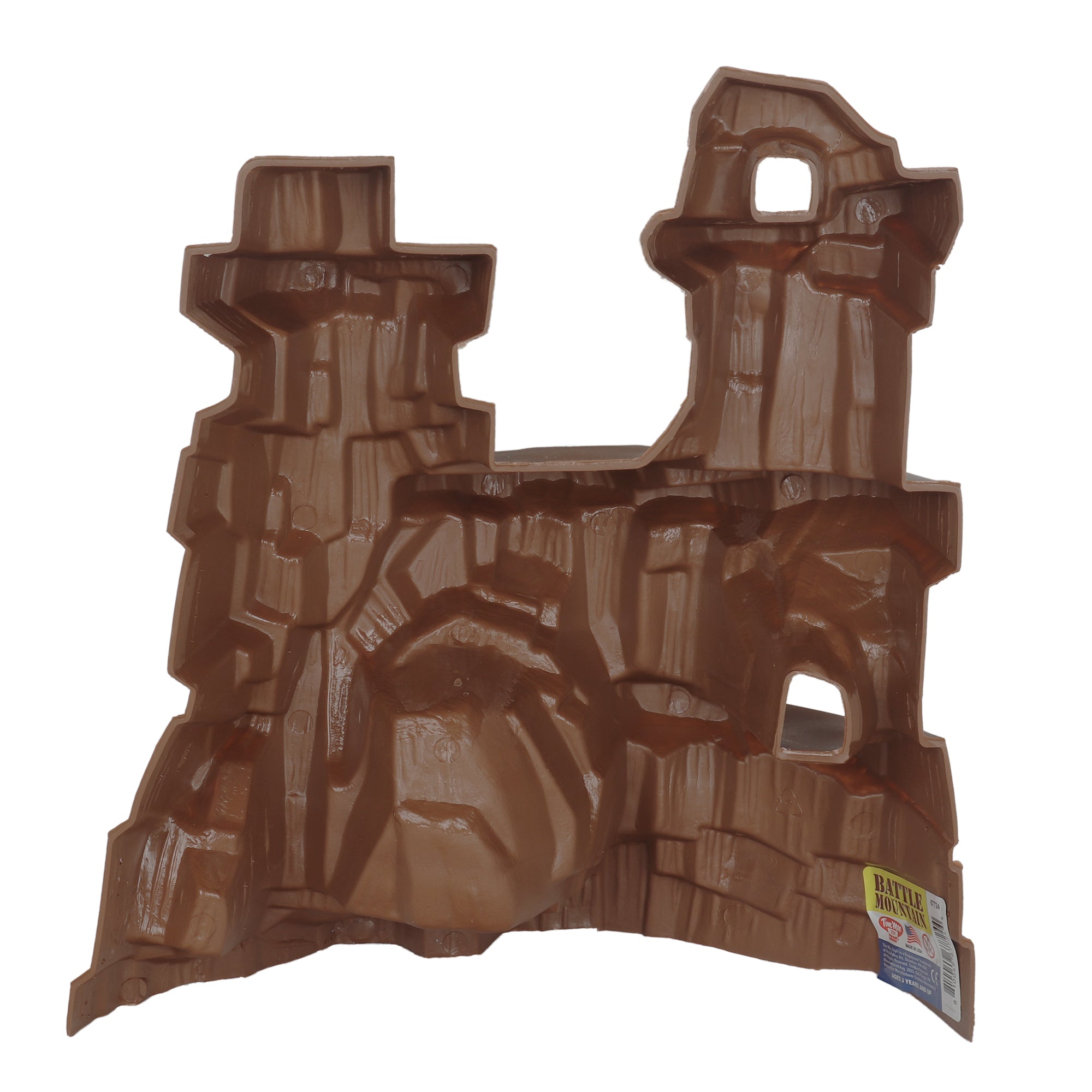 The last of the great American Toy Playset Accessories is back. The Tim Mee Toy Battle Mountain is proudly manufactured in the United States and features plenty of cliffs, ledges and even a couple of caverns for your favorite figures to explore or defend. Made from Brown color HDPE plastic, the Mountain measures 14 inches wide, 6 inches deep, and stands and impressive 15 inches tall. Works with lots of different figure scales including HO, 28mm, 54mm, 1:32, and even 3.75 inch tall action figures. Originally produced around 1991 by Processed Plastic Co. (Tim Mee Toy's parent company at the time). These Mountains were included in a variety of boxed Playsets packed along with Army men, Dinosaurs, jungle animals, and even the sci-fi figures known as the Galaxy Laser Team. Now the Mountain is available as a separate accessory so you can pair it with your favorite figures for play or display. This is a sturdy real American made toy meant to be played with for years to come. Recommended for ages 5 and up.