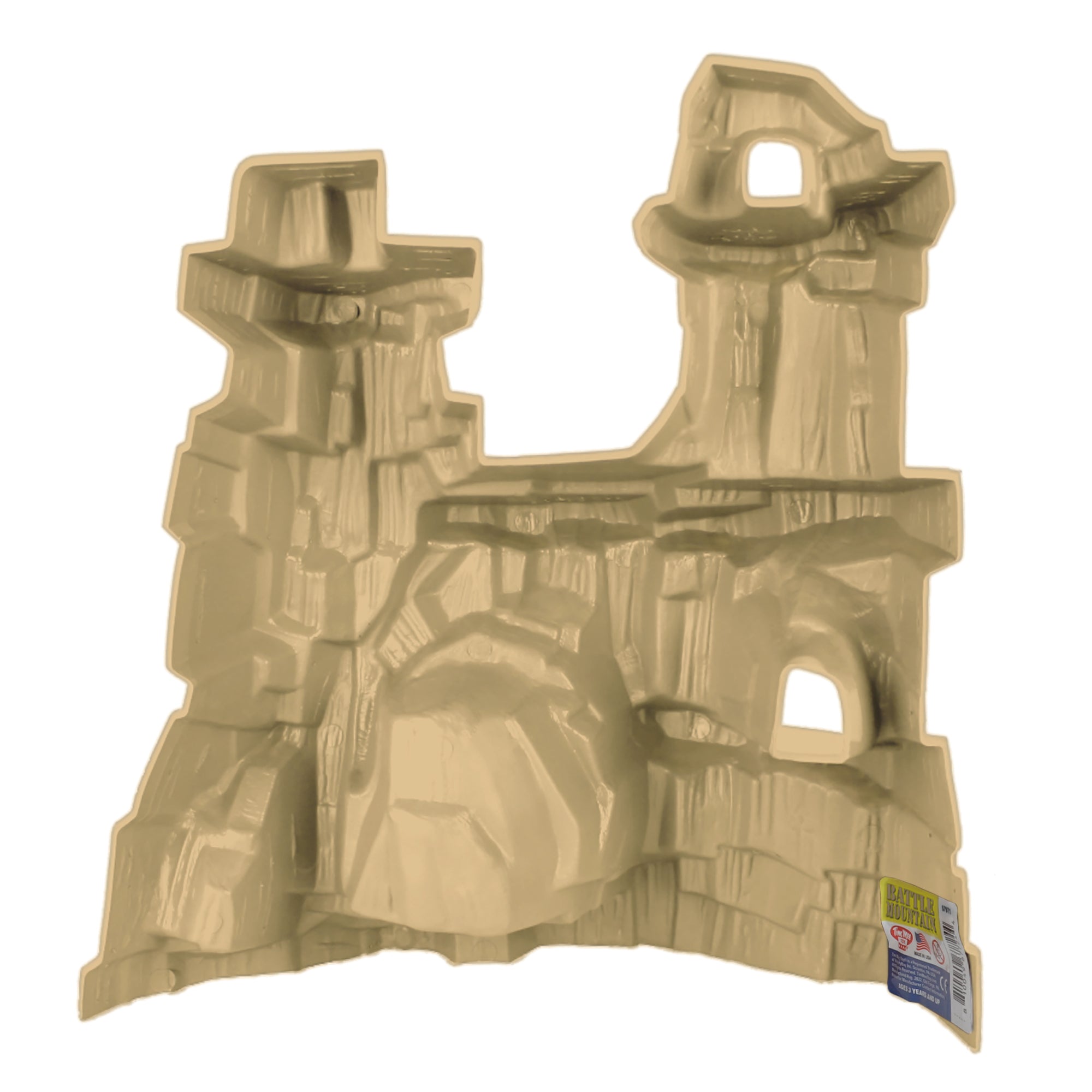 The last of the great American Toy Playset Accessories is back. The Tim Mee Toy Battle Mountain is proudly manufactured in the United States and features plenty of cliffs, ledges and even a couple of caverns for your favorite figures to explore or defend. Made from Tan color HDPE plastic, the Mountain measures 14 inches wide, 6 inches deep, and stands and impressive 15 inches tall. Works with lots of different figure scales including HO, 28mm, 54mm, 1:32, and even 3.75 inch tall action figures. Originally produced around 1991 by Processed Plastic Co. (Tim Mee Toy's parent company at the time). These Mountains were included in a variety of boxed Playsets packed along with Army men, Dinosaurs, jungle animals, and even the sci-fi figures known as the Galaxy Laser Team. Now the Mountain is available as a separate accessory so you can pair it with your favorite figures for play or display. This is a sturdy real American made toy meant to be played with for years to come. Recommended for ages 5 and up.